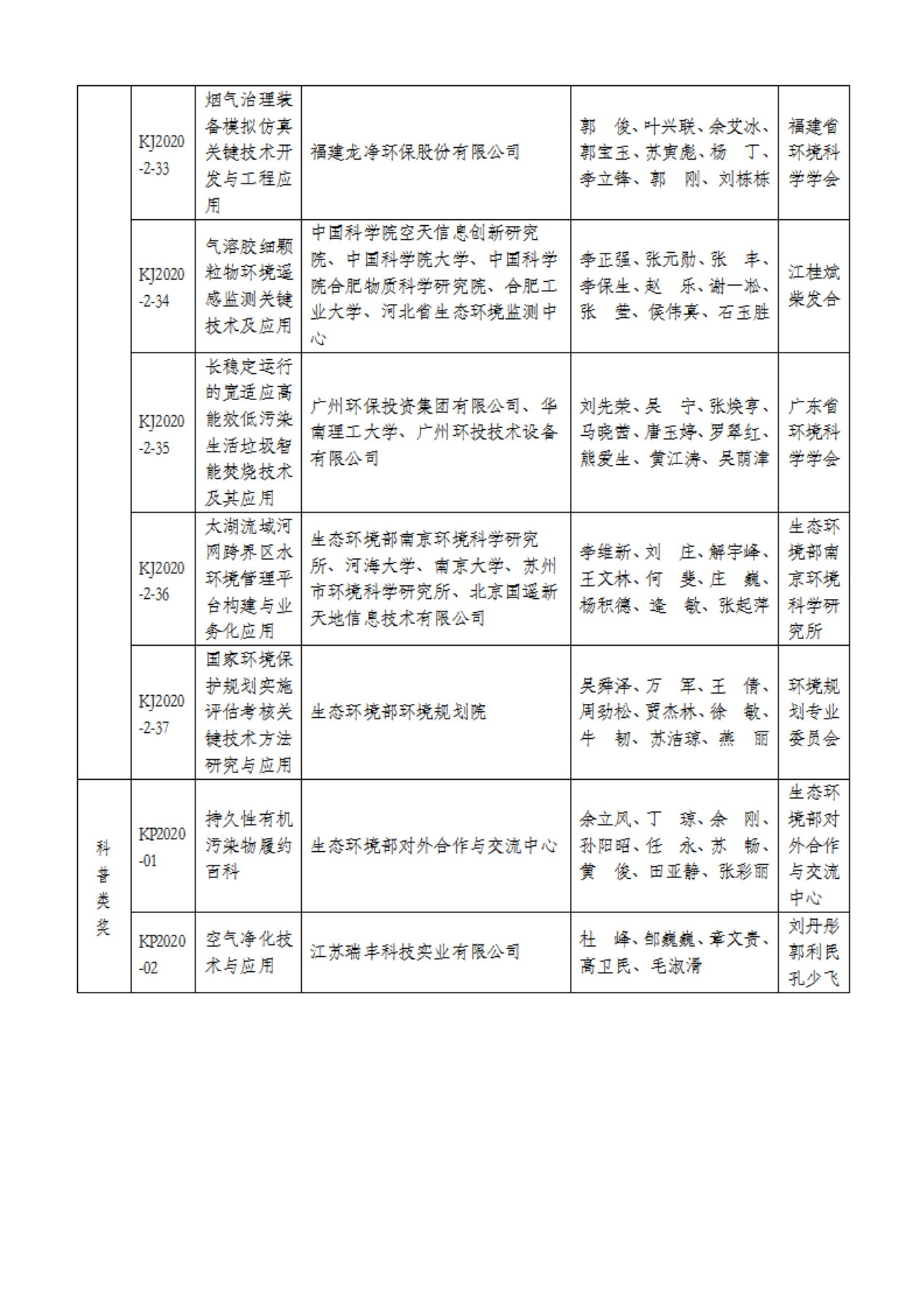 附:2020年度環(huán)境保護科學(xué)技術(shù)獎獲獎項目名單