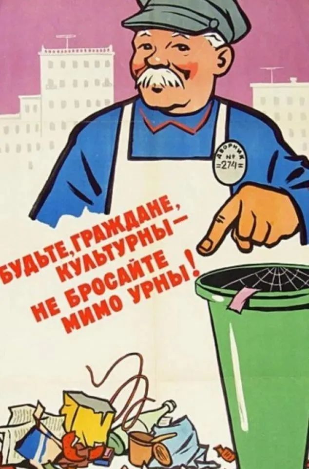 圖片說明:蘇聯(lián)海報,文字“Будьте , граждане , культурны Не бросайте миио урны ”,即“勞駕,居民,這是有文化的體現(xiàn):不(把垃圾)扔到垃圾箱外”。而日本從60年代以來,才開始開展廢棄物回收利用,應(yīng)該是在愿景理念和一些具體原則辦法上,借鑒了當(dāng)時的超級大國蘇聯(lián)。不過,日本在具體實(shí)踐中,又“青出于藍(lán)而勝于藍(lán)”,在廢棄物回收領(lǐng)域的深度和廣度方面不斷擴(kuò)展,成就斐然,支持了日本工業(yè)和整個經(jīng)濟(jì)的發(fā)達(dá),同時保護(hù)了生態(tài)環(huán)境,實(shí)現(xiàn)了綠色節(jié)能可持續(xù)發(fā)展,領(lǐng)先于世界。