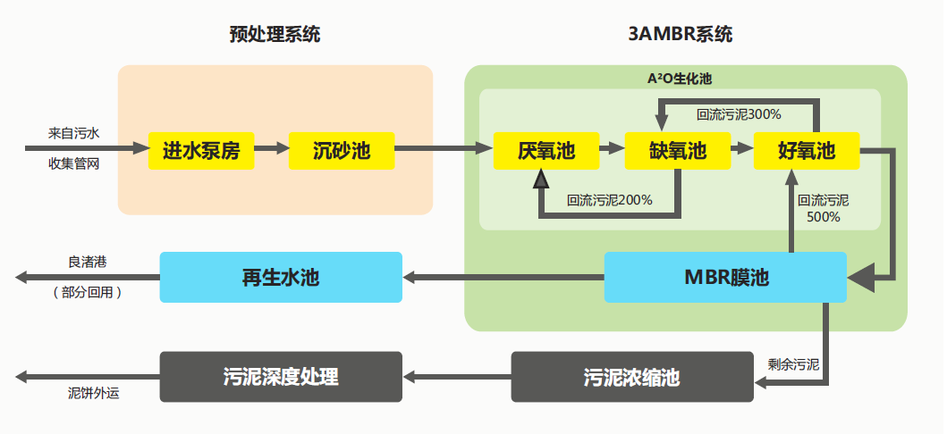 浙江省杭州市良渚污水處理廠三期工程的深度處理單元設(shè)計規(guī)模3.0萬m³/d,處理工藝為天創(chuàng)環(huán)境自主研發(fā)的高效膜生物反應(yīng)器(MBR)集成技術(shù)。