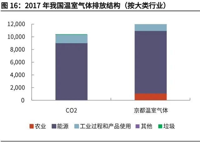 除了能源使用(主要是化石燃料燃燒及電力/熱力使用),工業(yè)過程碳排放也是 重要的二氧化碳來源,2017 年占比 13%。工業(yè)過程碳排放與各個行業(yè)采用的生產(chǎn)工藝直接相關(guān)。