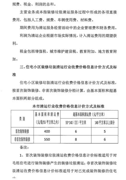 8月17日,《上海住宅小區(qū)裝修垃圾清運(yùn)行業(yè)收費(fèi)價(jià)格信息》(下稱《價(jià)格信息》)公布,《價(jià)格信息》明確了住宅小區(qū)裝修垃圾清運(yùn)行業(yè)收費(fèi)價(jià)格信息的定義,明確收費(fèi)價(jià)格主要成本構(gòu)成、計(jì)價(jià)方式、標(biāo)準(zhǔn)以及收費(fèi)主體。住宅小區(qū)裝修垃圾清運(yùn),根據(jù)首次和非首次裝飾裝修、基本面積等標(biāo)準(zhǔn)計(jì)價(jià),此外,機(jī)關(guān)、企事業(yè)單位裝飾裝修垃圾清運(yùn)處置費(fèi)將根據(jù)清運(yùn)、分揀等環(huán)節(jié),按市場化、全成本要素,協(xié)商收取。