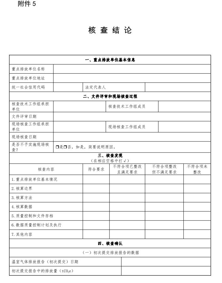 -對于提出不符合項(xiàng)的,技術(shù)工作組應(yīng)在收到重點(diǎn)排放單位提交的《不符合項(xiàng)清單》“整改措施及相關(guān)證據(jù)”一欄內(nèi)容后的5個工作日內(nèi)填寫完成《核查結(jié)論》。