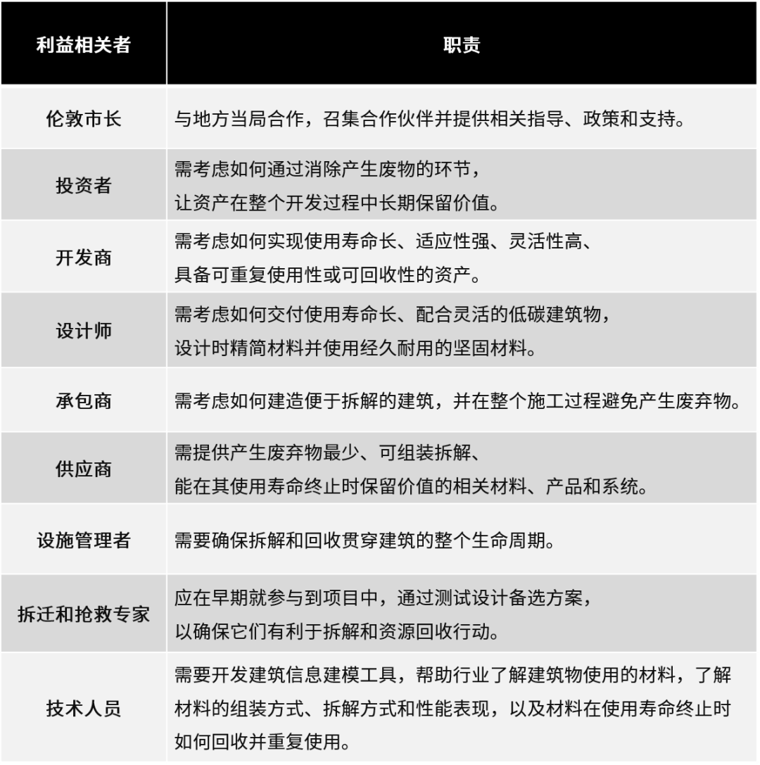 為優(yōu)先解決倫敦的主要廢棄物問(wèn)題,該《先導(dǎo)手冊(cè)》主要面向建成環(huán)境行業(yè)相關(guān)人士,包括參與建筑、基礎(chǔ)設(shè)施等實(shí)體建設(shè)工作的業(yè)主、設(shè)計(jì)團(tuán)隊(duì)、開(kāi)發(fā)商、建造團(tuán)隊(duì)等利益相關(guān)者,闡釋循環(huán)經(jīng)濟(jì)的價(jià)值、商機(jī)與實(shí)施策略。