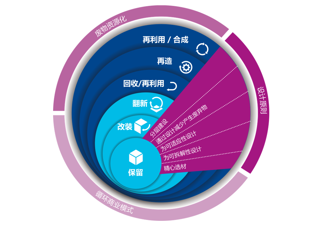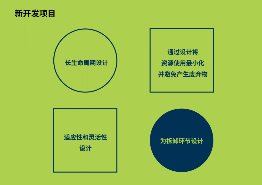 · 如何通過(guò)設(shè)計(jì)和施工安排削減對(duì)原料的需求,并使建筑材料、部件和產(chǎn)品在它們的使用壽命完結(jié)時(shí)能夠被拆解和再利用;