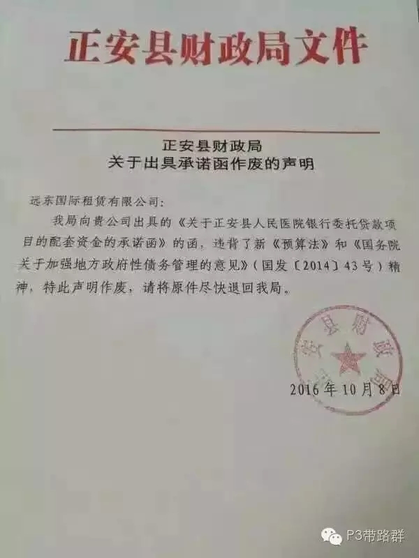 2016年10月10日—11日,貴州安順、遵義等地,要將向金融機(jī)構(gòu)(主要是融資租賃、信托)提供的為融資提供支持的“承諾函”、“安排函”撤回。此消息一出,在金融機(jī)構(gòu)和PPP界掀起軒然大波:“沒有了‘承諾函’,政府融資的業(yè)務(wù)還做不做了?”“整個社會信用在這一刻瞬間崩塌”……