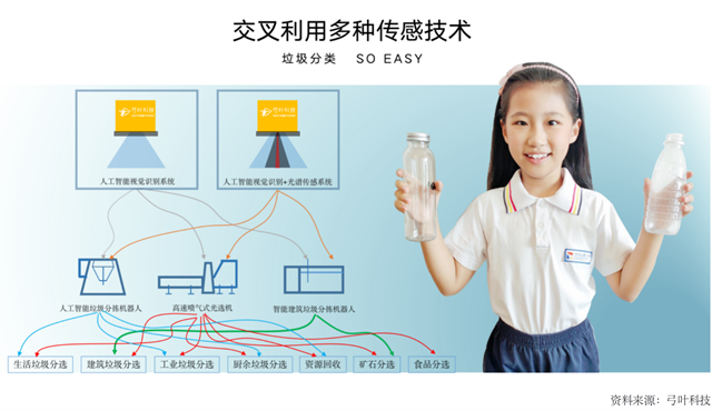 除了將固廢大數(shù)據(jù)庫、云端、多傳感器融合技術(shù)、驅(qū)控一體技術(shù)、AI識別技術(shù)集合于一體的人工智能垃圾分揀機器人,弓葉科技也將服務(wù)綜合運用于循環(huán)經(jīng)濟產(chǎn)業(yè)的其他環(huán)節(jié),構(gòu)建以AI和大數(shù)據(jù)驅(qū)動的全產(chǎn)業(yè)鏈落地,在固廢回收領(lǐng)域,實踐高效減碳,助力固廢處理智能化、數(shù)字化和自動化轉(zhuǎn)型升級。