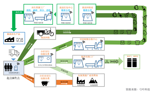 值得一提的是,在十二五、十三五期間,已經(jīng)涌現(xiàn)出一批擁有“綠色+產(chǎn)業(yè)”儀式的科技驅(qū)動型企業(yè),專注于循環(huán)經(jīng)濟全產(chǎn)業(yè)鏈的資源回收利用,運用人工智能、大數(shù)據(jù)等前沿技術(shù)和“互聯(lián)網(wǎng)+”模式與傳統(tǒng)綠色產(chǎn)業(yè)有機融合,在高價值固廢的前端回收、中段分揀、末端能源重造等環(huán)節(jié)大大提升效率。