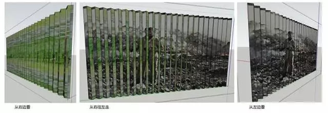這堵參觀墻暗藏玄機(jī),從左右兩側(cè)不同角度看會(huì)看到完全不同的兩幅畫面,從右邊看看到的是綠色的充滿生氣的地球風(fēng)景,而一路從右往左走去,從左側(cè)看到的則是工人在垃圾堆里工作的情形,從垃圾堆積前后的環(huán)境對比,直觀而震撼地向觀眾展現(xiàn)了隨意丟棄生活垃圾對土壤、空氣、水資源、人類健康造成的危害。