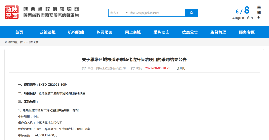 陜西省政府采購網(wǎng)消息,8月5日,西安市雁塔區(qū)城市道路市場化清掃保潔項目開標再現(xiàn)大場面。