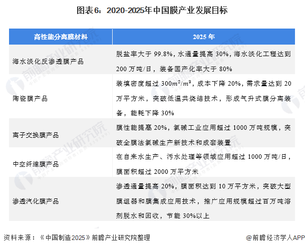圖表6:2020-2025年中國(guó)膜產(chǎn)業(yè)發(fā)展目標(biāo)