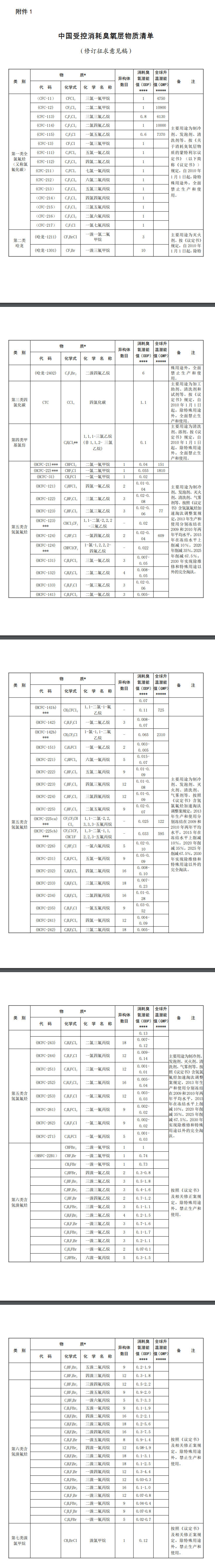 《中國受控消耗臭氧層物質(zhì)清單(修訂征求意見稿)》修訂說明