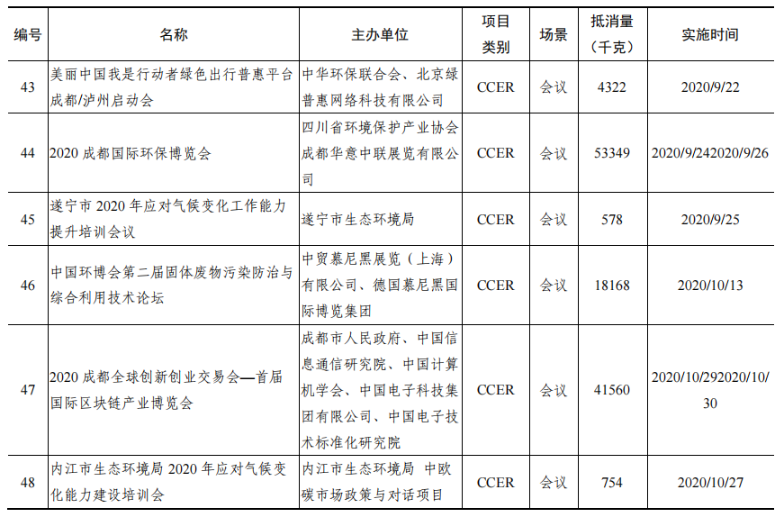 目前,四川已擁有碳中和會(huì)議、展覽、大數(shù)據(jù)中心、園區(qū)、景區(qū)、音樂會(huì)、婚禮等場(chǎng)景,雅安大數(shù)據(jù)產(chǎn)業(yè)園建成全國(guó)首個(gè)碳中和國(guó)家綠色數(shù)據(jù)中心,青城山—都江堰風(fēng)景名勝區(qū)成為國(guó)內(nèi)首個(gè)碳中和景區(qū)。從集中度看,溫室氣體排放抵消量最大的10個(gè)活動(dòng)(都江堰風(fēng)景名勝區(qū)、第二屆國(guó)際城市可持續(xù)發(fā)展高層論壇、青城山風(fēng)景名勝區(qū)、全國(guó)機(jī)關(guān)事務(wù)文化建設(shè)工作研討會(huì)、2020成都國(guó)際環(huán)保博覽會(huì)、四川省林業(yè)碳匯國(guó)際研討會(huì)、2019天府金融論壇主論壇及發(fā)布會(huì)、2020成都全球創(chuàng)新創(chuàng)業(yè)交易會(huì)—首屆國(guó)際區(qū)塊鏈產(chǎn)業(yè)博覽會(huì)、四川省鐵路產(chǎn)業(yè)投資集團(tuán)公司資產(chǎn)經(jīng)營(yíng)管理人員專題培訓(xùn)班、四川省用能權(quán)交易開市活動(dòng)及業(yè)務(wù)培訓(xùn)會(huì)),共抵消溫室氣體2761.3噸,約占全部抵消量的57.2%;成都市碳中和活動(dòng)超過(guò)60場(chǎng)次,最為集中,其次是遂寧市。從活動(dòng)層次看,多以企事業(yè)單位活動(dòng)為主;地方政府組織或參與的活動(dòng)超過(guò)34場(chǎng)次;國(guó)際會(huì)議共有4場(chǎng)次,包括第二屆國(guó)際城市可持續(xù)發(fā)展高層論壇、2020成都國(guó)際環(huán)保博覽會(huì)、四川省林業(yè)碳匯國(guó)際研討會(huì)、2020成都全球創(chuàng)新創(chuàng)業(yè)交易會(huì)—首屆國(guó)際區(qū)塊鏈產(chǎn)業(yè)博覽會(huì)、第三屆國(guó)際城市可持續(xù)發(fā)展高層論壇。環(huán)境類活動(dòng)碳中和超過(guò)40場(chǎng)次,金融機(jī)構(gòu)參與活動(dòng)也相對(duì)較多,凸顯了金融領(lǐng)域和環(huán)境領(lǐng)域的理念引領(lǐng)作用。
