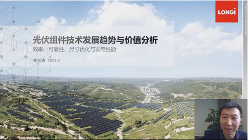 隆基樂葉光伏高級產(chǎn)品經(jīng)理李紹唐博士帶來了主題為《光伏組件技術(shù)發(fā)展趨勢與價(jià)值分析——效率,可靠性,尺寸優(yōu)化與發(fā)電性能》的分享