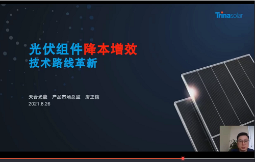 天合光能產(chǎn)品市場總監(jiān)唐正愷總監(jiān),帶來了主題為《光伏系統(tǒng)降本增效技術(shù)路線革新》的分享。