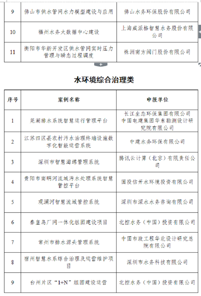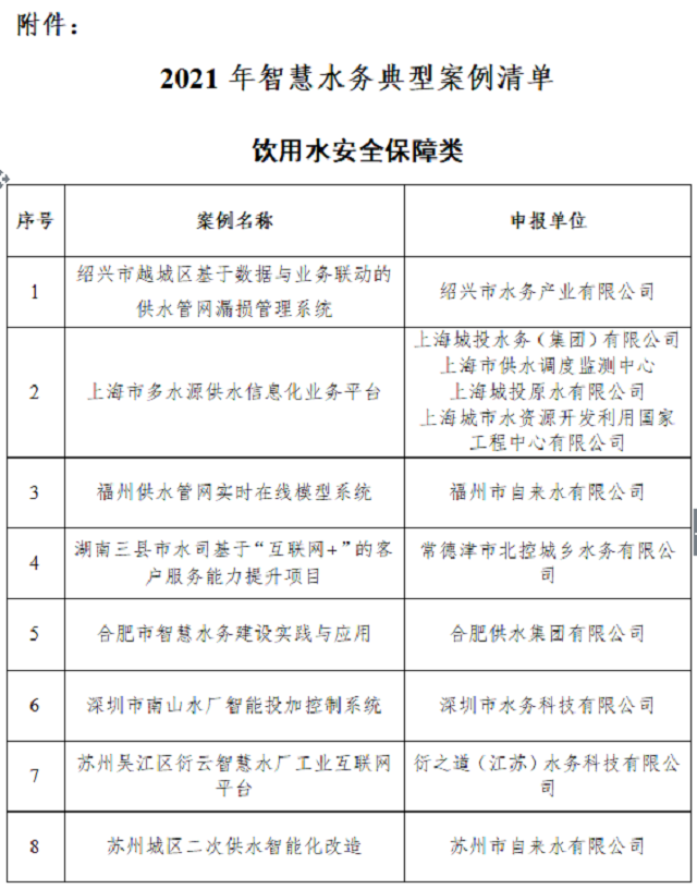 附件:2021年智慧水務典型案例清單