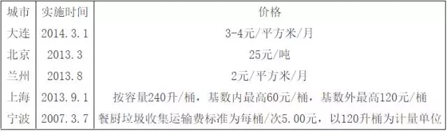 我國(guó)部分城市餐廚垃圾處理收費(fèi)標(biāo)準(zhǔn)