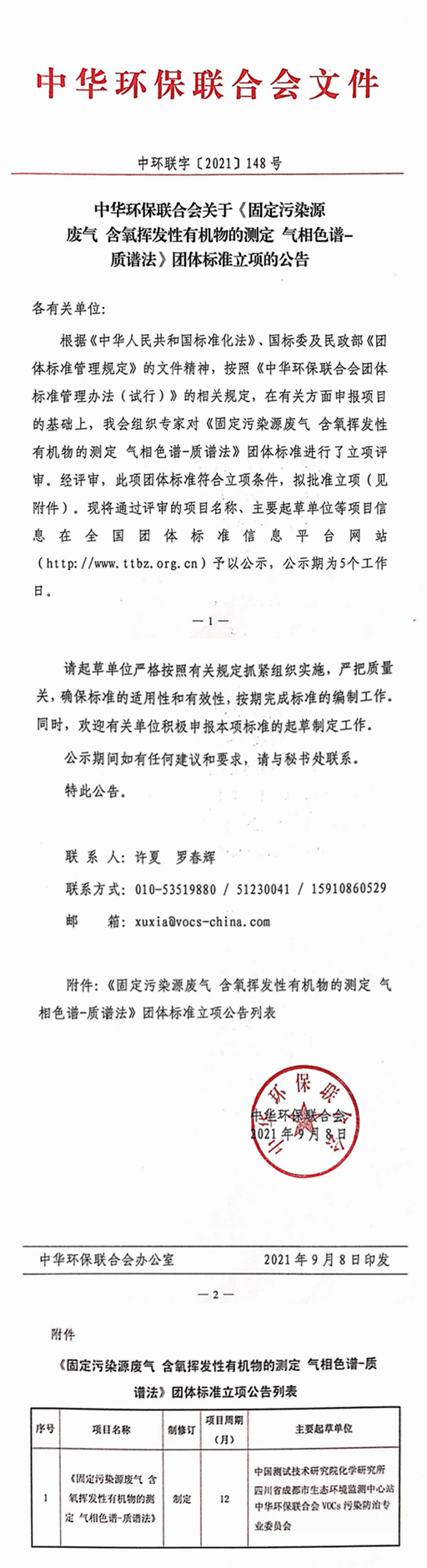 為了貫徹落實(shí)《中華人民共和國(guó)標(biāo)準(zhǔn)化法》、國(guó)務(wù)院《深化標(biāo)準(zhǔn)化工作改革方案》、國(guó)家標(biāo)準(zhǔn)化管理委員會(huì)和民政部印發(fā)的《團(tuán)體標(biāo)準(zhǔn)管理規(guī)定》(國(guó)標(biāo)委聯(lián)〔2019〕1號(hào))的文件精神;按照《中華環(huán)保聯(lián)合會(huì)團(tuán)體標(biāo)準(zhǔn)管理辦法(試行)》要求,經(jīng)中華環(huán)保聯(lián)合會(huì)立項(xiàng)批準(zhǔn),由中國(guó)測(cè)試技術(shù)研究院化學(xué)研究所、四川省成都市生態(tài)環(huán)境監(jiān)測(cè)中心站和中華環(huán)保聯(lián)合會(huì)VOCs污染防治專業(yè)委員會(huì)等單位共同發(fā)起的全國(guó)團(tuán)體標(biāo)準(zhǔn)《固定污染源廢氣 含氧揮發(fā)性有機(jī)物的測(cè)定 氣相色譜-質(zhì)譜法》起草制定工作現(xiàn)已啟動(dòng);按照流程,標(biāo)準(zhǔn)項(xiàng)目信息已獲得全國(guó)團(tuán)體標(biāo)準(zhǔn)信息平臺(tái)的立項(xiàng)公示。