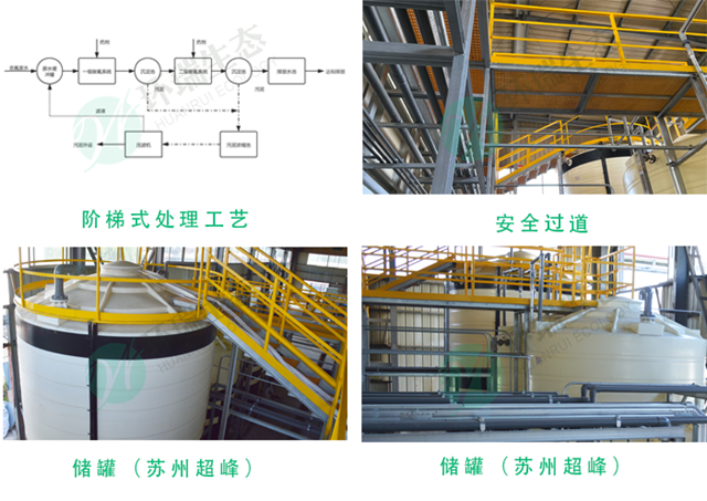 “兩級階梯式深度除氟”工藝——環(huán)瑞自主研發(fā),并已多項(xiàng)目、成熟運(yùn)用。該工藝?yán)贸铀幈壤A梯式變化特點(diǎn),精心設(shè)計(jì)(第一步將氟化物處理至5mg/L,第二步將氟化物處理至<0.8mg/L),流程順暢,處理效果好,同時(shí)能最大限度降低藥劑用量(比一步法降低50%加藥量),確保廢水穩(wěn)定達(dá)標(biāo)。
