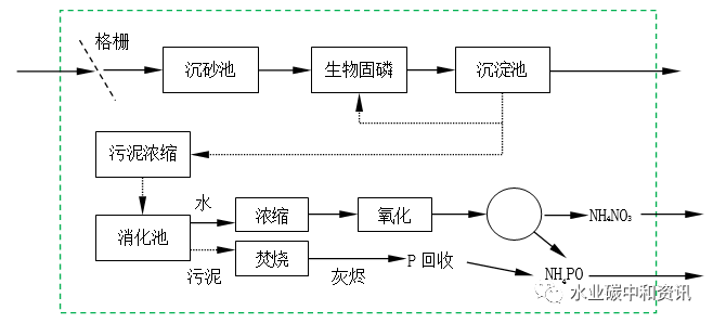 Geestmerambacht污水處理廠已開始在側(cè)流中采用結(jié)晶反應(yīng)器從剩余污泥中回收顆粒狀磷酸鈣,用于磷酸鹽工業(yè)原料。Steenderen污水處理廠處理來自于土豆加工廠廢水和當(dāng)?shù)厥姓鬯T搹S以投加MgO方式生產(chǎn)鳥糞石,并實現(xiàn)污泥減量。在荷蘭南部SNB地區(qū),污水處理廠污泥采用焚燒處理(400000 t/a),磷酸鹽(PO43-)被濃縮后殘留于灰燼中,其含量可達80 Gp/kg灰分。從污泥灰燼中回收磷,可生產(chǎn)PO43-達3100 Tp/a,并被銷售至磷酸鹽工業(yè)。Deventer污水廠采用BCFS工藝,該工藝厭氧池側(cè)流上清液中含有高濃度的PO43-(30~50 mgP/L),可使用化學(xué)結(jié)晶方法投加金屬鹽予以分離、回收。