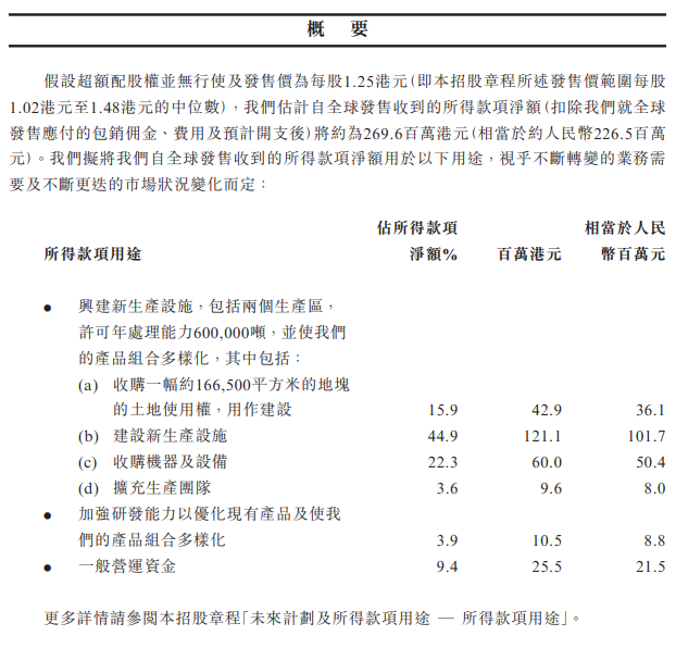 招股書顯示,鴻承環(huán)??萍即舜文假Y將新建兩個年處理能力達60萬噸的生產(chǎn)區(qū),并擴充生產(chǎn)團隊,同時構(gòu)建多元化產(chǎn)品組合,加強研發(fā)能力和優(yōu)化現(xiàn)有產(chǎn)品,以及補充一般運營資金。