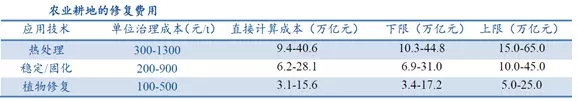 我國土壤污染類型包括農(nóng)業(yè)耕地土壤污染、城市工業(yè)用地土壤污染以及礦區(qū)土壤污染。目前,我國待修復(fù)的污染場地?cái)?shù)量非常之多,保守估計(jì)超過50萬塊。其中,耕地土壤修復(fù)投資需求在3萬億以上,城市土壤修復(fù)投資需求1萬億以上,礦區(qū)土壤修復(fù)投資需求可達(dá)近2萬億。(備注:由于修復(fù)分為輕重緩急,分階段進(jìn)行,而且受到資金的制約,所以預(yù)測的投資需求,和真正會去修復(fù)的地塊,不是同一個(gè)概念)