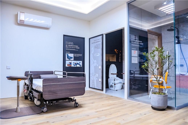 衛(wèi)浴空間內(nèi),健康一體機可以通過收集分析如廁時的身體數(shù)據(jù),了解自身狀態(tài),將“健康防線”前移,升級版產(chǎn)品逐步嵌入舒適元素。臥室內(nèi),電動分離床可隨時將睡床的一部分獨立分出來,變成一臺全自動電動移動椅,最大限度降低老年人生活障礙及護(hù)理人員負(fù)擔(dān)……看似普通的養(yǎng)老空間內(nèi),科技讓養(yǎng)老生活更有溫度。