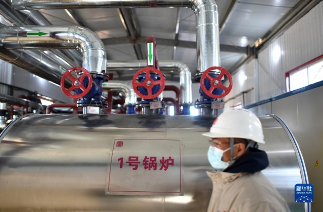 11月25日,大唐青海能源開發(fā)有限公司一名工人在青海省海南藏族自治州興??h民族高級中學(xué)鍋爐房內(nèi)巡檢。新華社記者 駱曉飛 攝