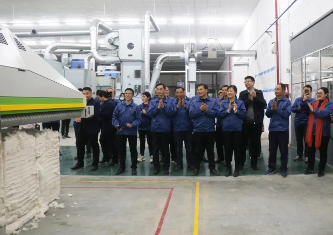 11月26日,悅達紡織集團射陽盤灣項目舉行試生產(chǎn)儀式,標志著該項目一期5.3萬錠經(jīng)過4個月的加速建設(shè),正式進入試生產(chǎn)階段。悅達紡織集團黨委書記、董事長、總經(jīng)理戴俊和盤灣鎮(zhèn)黨委書記陳進之共同按下開車按鈕,悅達紡織集團副總經(jīng)理、悅達棉紡公司總經(jīng)理顏國華主持儀式,盤灣鎮(zhèn)黨政主要領(lǐng)導(dǎo)及悅達紡織集團領(lǐng)導(dǎo)班子成員、悅達棉紡公司中層以上管理人員參加儀式。
