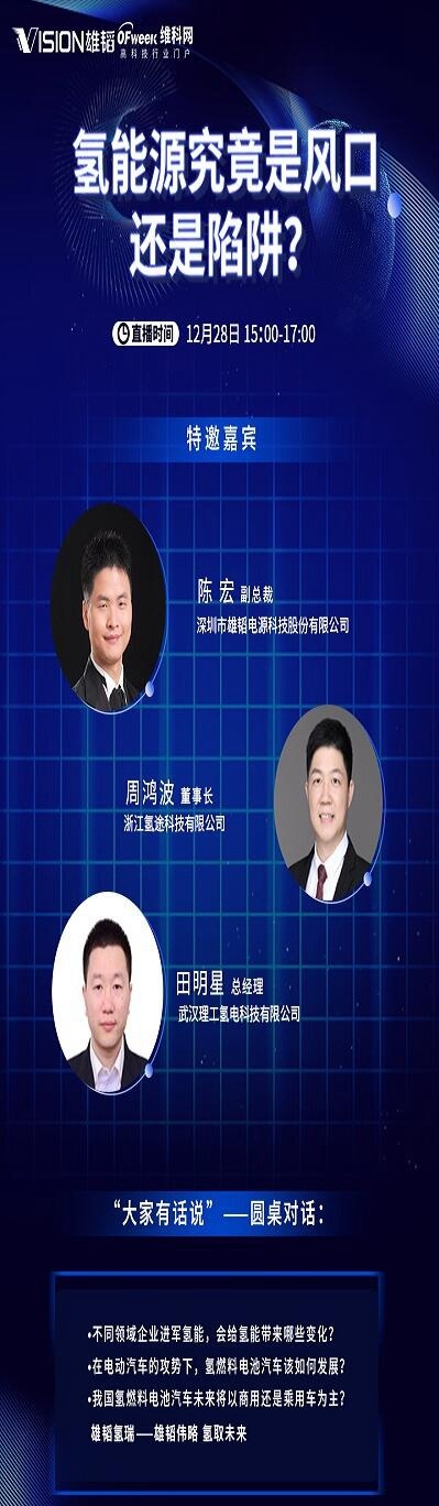 但是,當前氫燃料電池也存在成本高企、配套設施欠缺、技術不夠成熟等痛點。這一背景下,由專注于氫能電堆研發(fā)與生產的雄韜氫瑞主辦,OFweek維科網氫能承辦的“中國氫能發(fā)展研討會”,將于2021年12月28日在OFweek在線直播平臺舉辦。