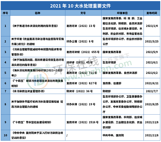 2021水處理政策文件回看至此,2022讓我們重整行囊再出發(fā)!還有更多年終盤點,請持續(xù)關(guān)注~