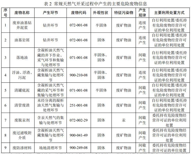 3.2 常規(guī)天然氣開采主要危險廢物產(chǎn)生環(huán)節(jié)