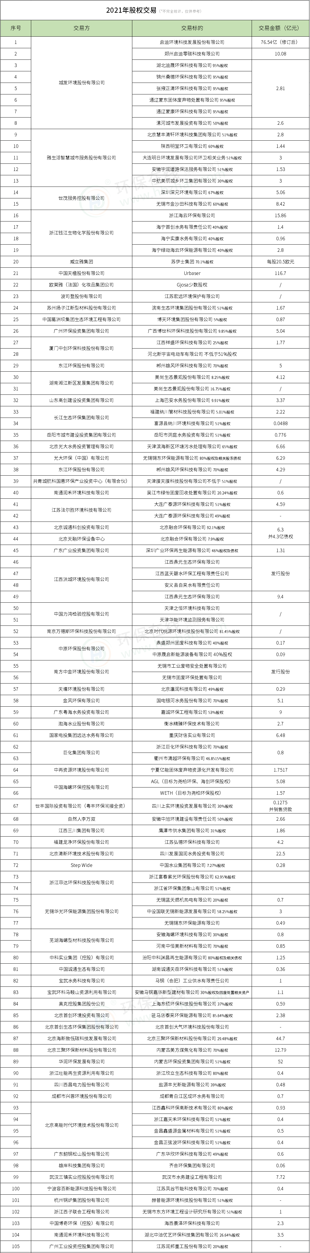 上半年,環(huán)保在線曾進(jìn)行過半年度盤點(diǎn),可回顧【環(huán)保并購年中報之大“購”特“購”和跨界“購”】以及【年中報【下】:2021上半年60+環(huán)保并購交易一覽】。