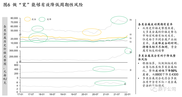 事實上,不同的有色金屬波動周期會有差異,同時具備多種有色金屬處置的技術(shù)和生產(chǎn)線,也能夠幫助企業(yè)抵抗行業(yè)的周期性風險,根據(jù)測算,做多種再生金屬與僅做再生銅相關(guān)的業(yè)務相比,整體價格波動性能夠下降50%左右(見圖6)。