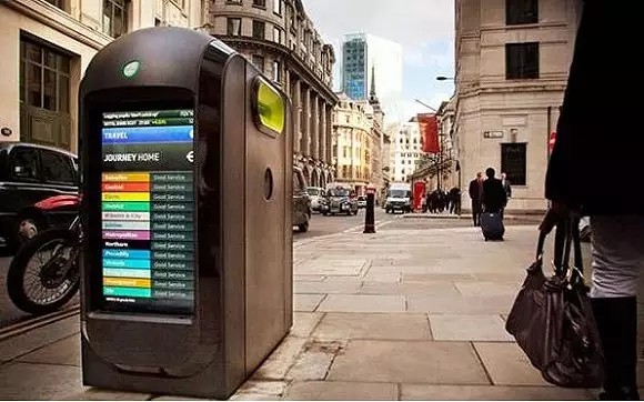 為了解決倫敦日益加劇的廢報紙回收問題而發(fā)明的Techno Pods 新式多媒體創(chuàng)意垃圾箱,也叫報紙回收站。垃圾箱兩側(cè)還有 LED 屏幕,能夠不斷滾動播報當(dāng)日新聞事件、天氣情況、顯示地鐵信息等。這種設(shè)計完全顛覆了以往垃圾箱在人們腦海中的印像,使垃圾箱成為城市中不可缺少的傳媒載體。