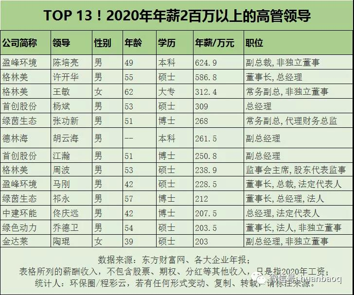 3、環(huán)保行業(yè)高管薪酬大揭秘!哪家公司待遇最好?“最強(qiáng)打工人”是誰(shuí)?環(huán)保圈,2021-06-11