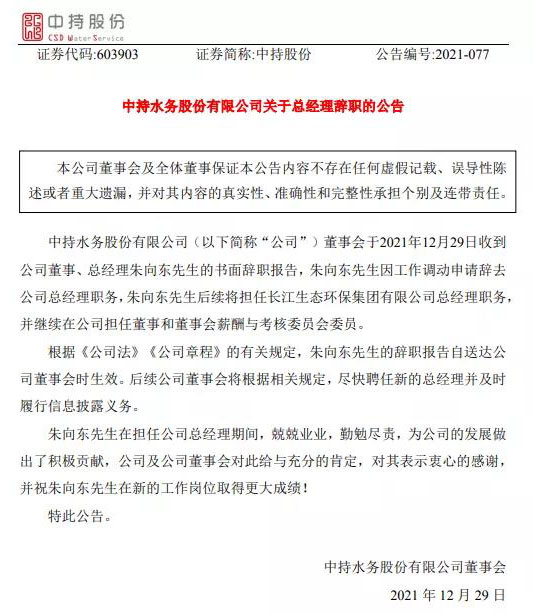 4、朱向東辭任中持股份總經(jīng)理,將擔(dān)任長(zhǎng)江環(huán)保集團(tuán)總經(jīng)理,全聯(lián)環(huán)境商會(huì),2021-12-30