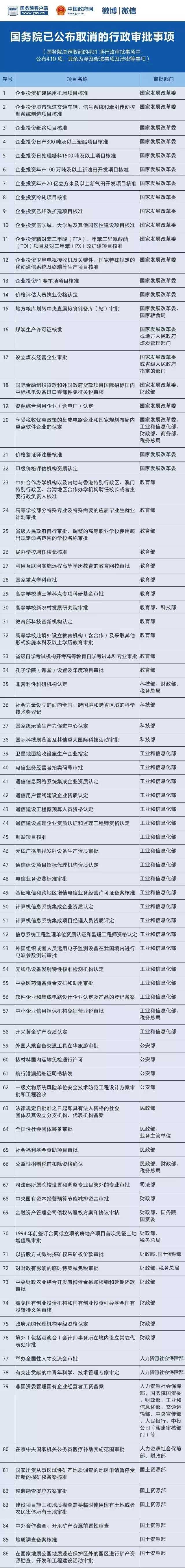 (注:國務(wù)院決定取消的491項行政審批事項中,公布410項,其余為涉及修法事項及涉密等事項。)