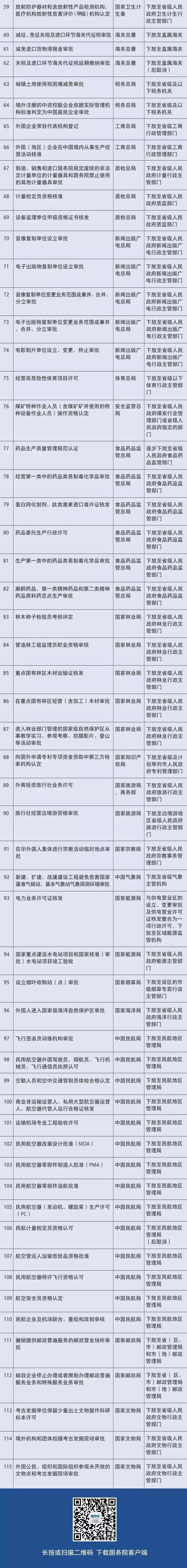 (注:國務(wù)院決定下放的127項行政審批事項中,公布115項,其余為涉及修法事項及涉密等事項。)