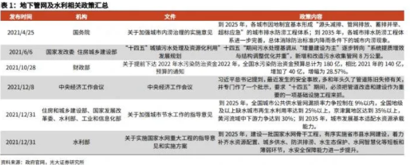 2021年以來,國家密集出臺地下管網(wǎng)、水利工程建設(shè)的相關(guān)政策,可謂利好不斷。