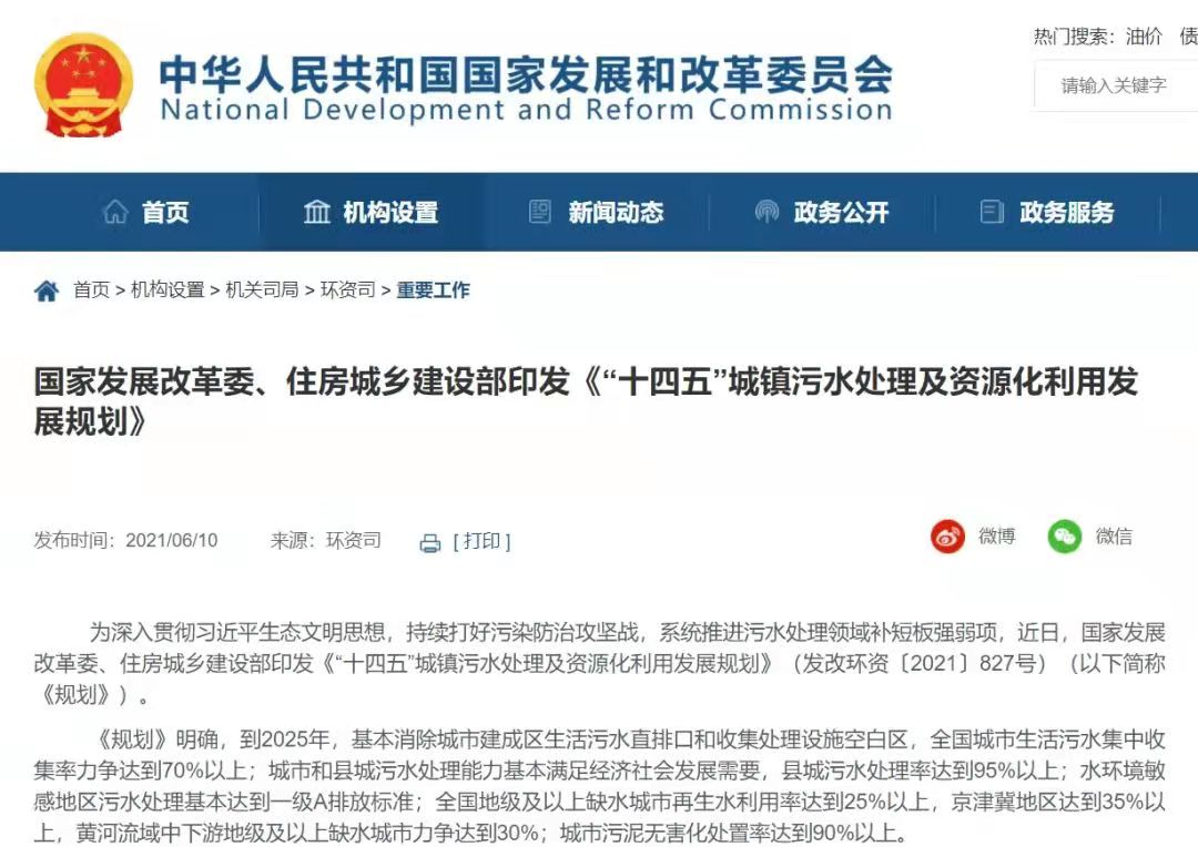 2、安排中央預(yù)算內(nèi)投資支持污水污泥處理項(xiàng)目建設(shè)。2021年5月,發(fā)展改革委印發(fā)《污染治理和節(jié)能減碳中央預(yù)算內(nèi)投資專項(xiàng)管理辦法》,繼續(xù)支持污水處理等項(xiàng)目建設(shè)。