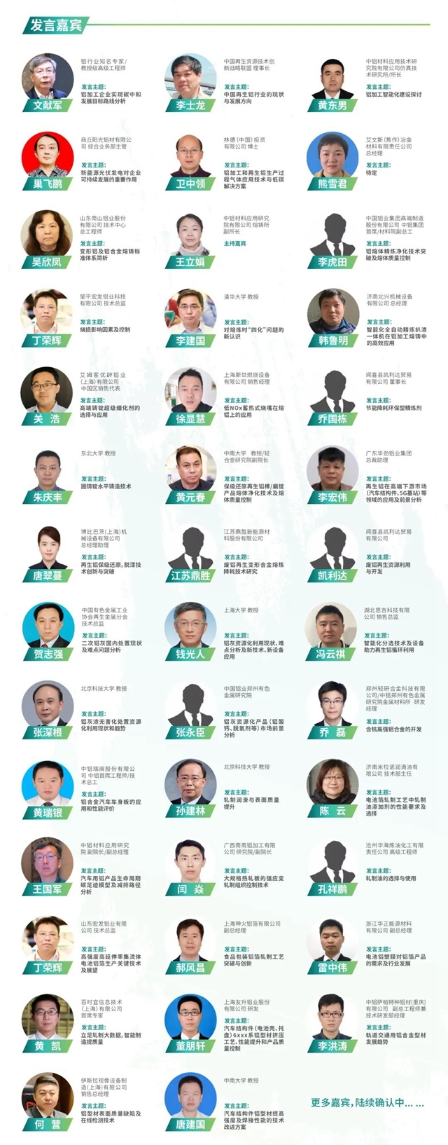 部分已報名企業(yè) 安徽玉成光華鋁業(yè)有限公司、池州市九華明坤鋁業(yè)有限公司、大力神鋁業(yè)股份有限公司、東北輕合金有限責(zé)任公司、福建省南平鋁業(yè)股份有限公司、富源錦鴻金屬制品有限公司、(今飛控股集團有限公司)、廣東華昌鋁廠有限公司、廣東華勁鋁業(yè)集團、廣西柳州銀海鋁業(yè)股份有限公司、廣西南南鋁加工有限公司、貴州貴鋁新材料股份有限公司、河北立中有色金屬集團有限公司、河南平煤隆基光伏材料有限公司、河南省淅川鋁業(yè)(集團)有限公司、河南萬達(dá)鋁業(yè)有限公司、河南鑫泰鋁業(yè)有限公司、河南中孚高精鋁材有限公司、河南中孚實業(yè)高精鋁公司、河南中孚實業(yè)股份有限公司、湖北新金洋資源股份公司、湖南中創(chuàng)空天新材料股份有限公司;