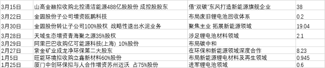 如山高金融擬控股北控清潔能源,就是意欲借“雙碳”東風(fēng)打造新能源旗艦企業(yè);紫金礦業(yè)成龍凈環(huán)保第二大股東,也是想優(yōu)勢互補(bǔ),在環(huán)保和新能源領(lǐng)域進(jìn)行深度合作;其他如垃圾焚燒領(lǐng)先企業(yè)旺能環(huán)境、國內(nèi)除塵領(lǐng)域龍頭中創(chuàng)環(huán)保、生態(tài)環(huán)境綜合治理企業(yè)天域生態(tài)以及環(huán)保建材企業(yè)金圓股份,主要都是想以并購的方式涉入新能源鋰電材料及再生領(lǐng)域。