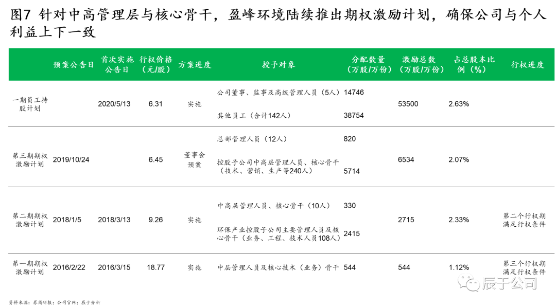 盈峰環(huán)境的掌舵人何劍鋒曾在多個場合下強調(diào)其發(fā)展的三個核心:訂單導(dǎo)向、技術(shù)創(chuàng)新、人才激勵。自2016年開始,盈峰環(huán)境多次推出人才激勵計劃,把握獎勵過去、激勵未來的核心觀念,不斷提高激勵總額度、擴大激勵對象與范圍、優(yōu)化業(yè)績考核要求,既完善了員工薪酬結(jié)構(gòu),提升了員工積極性與穩(wěn)定性,也實現(xiàn)了治理結(jié)構(gòu)的優(yōu)化,保障管理層與公司利益的長期一致性(見圖7)。