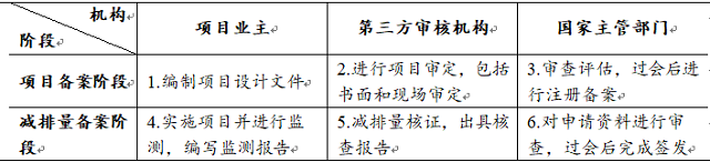 CCER項目的開發(fā)流程在很大程度上沿襲了清潔發(fā)展機制(CDM)項目的框架和思路,均需經(jīng)過嚴(yán)格的項目備案和減排量簽發(fā)流程。主要包括六個步驟:項目文件設(shè)計、項目審定、項目備案、項目實施與監(jiān)測、減排量核查與核證、減排量簽發(fā)。具體而言,項目業(yè)主選擇適合項目的方法學(xué),根據(jù)方法學(xué)要求編制項目設(shè)計文件,向國家主管部門申請,并由第三方審核機構(gòu)審定該減排項目,項目審定通過后經(jīng)主管部門評審批準(zhǔn)完成注冊備案。經(jīng)備案的CCER項目產(chǎn)生減排量后,項目業(yè)主聘請第三方機構(gòu)進行減排量核證,并向國家主管部門申請簽發(fā)減排量。對于同一個CCER項目,項目注冊備案只需發(fā)生一次,而減排量的簽發(fā)備案則會因為所產(chǎn)生CCER的時段不同發(fā)生多次。
