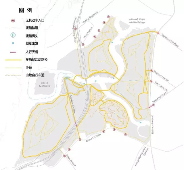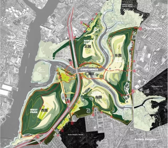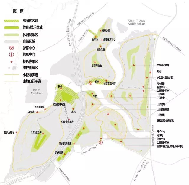 公園的建設項目以提升斯塔滕島形象,創(chuàng)造宜居、宜樂、宜教的城市空間為目標。發(fā)展項目遵循以下六項原則: