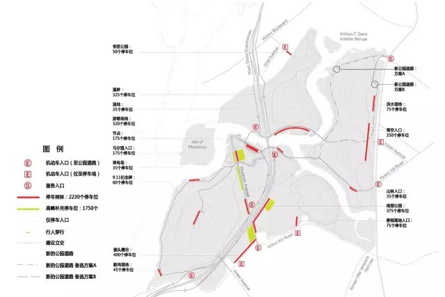 (5)在生態(tài)敏感度允許條件下優(yōu)化交通網絡,提升公園在紐約市域及區(qū)域范圍內的可達性;