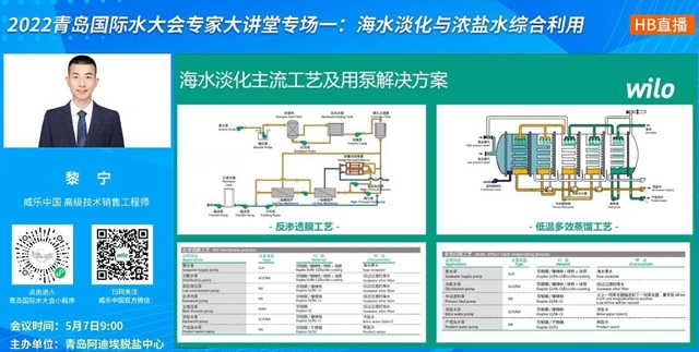“威樂集團自1995年進入中國,目前擁有北京和秦皇島兩座工廠。威樂北京工廠年產能15萬臺,威樂秦皇島工廠每年能生產150萬套電機,覆蓋400多種產品型號。我們可以從原水泵、進料泵、反沖洗泵、增壓泵、主增壓泵、濃鹽水泵到產成品水泵的全系列高效耐腐蝕水泵產品,為海水淡化和海洋工業(yè)發(fā)展提供助力”,在威樂(中國)水泵系統(tǒng)有限公司高級技術銷售工程師黎寧的介紹中,希望你們都能找到一個熟悉,又總帶著驚喜的威樂。