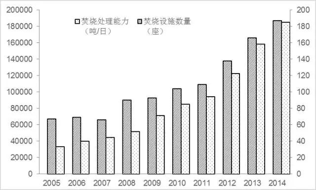 近年來我國城市生活垃圾焚燒處理設(shè)施投入運(yùn)行數(shù)量逐年增加,焚燒處理能力也有非常大的提高。