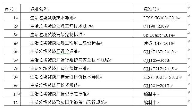 生活垃圾清潔焚燒在我國已經(jīng)有將近30多年的歷史,垃圾焚燒處理技術(shù)裝備日趨成熟,產(chǎn)業(yè)鏈條、骨干企業(yè)和建設(shè)運(yùn)行管理模式逐步形成,相關(guān)的設(shè)計(jì)、建設(shè)、運(yùn)行標(biāo)準(zhǔn)和評價體系也日趨成熟完善。近年來一些標(biāo)準(zhǔn)和規(guī)章制度相繼實(shí)施: