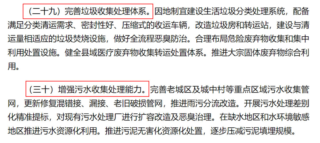 推進(jìn)以縣城為重要載體的城鎮(zhèn)化建設(shè),都會(huì)帶來哪些商業(yè)機(jī)會(huì)?可以確定的是,環(huán)保產(chǎn)業(yè)將會(huì)是最大的受益者之一。為什么?因?yàn)榄h(huán)境基礎(chǔ)設(shè)施建設(shè)是城鎮(zhèn)化建設(shè)的重要內(nèi)容之一。國(guó)家發(fā)改委規(guī)劃司有關(guān)負(fù)責(zé)人表示,環(huán)境基礎(chǔ)設(shè)施的水平,決定著縣城的人居環(huán)境和整體面貌,是縣城生態(tài)文明建設(shè)的重要支撐。而目前,我們?cè)谶@方面還存在著短板。不少縣城的環(huán)境基礎(chǔ)設(shè)施缺口較大,如污水收集管網(wǎng)覆蓋不足、垃圾焚燒設(shè)施缺乏、黑臭水體尚未消除、藍(lán)綠生態(tài)空間有限等。因此,《意見》中專門拿出了一章的內(nèi)容來對(duì)此進(jìn)行論述,主要內(nèi)容包括:1、加強(qiáng)歷史文化保護(hù)傳承,保留歷史肌理、空間尺度、景觀環(huán)境。2、打造藍(lán)綠生態(tài)空間,完善生態(tài)綠地系統(tǒng)。3、推進(jìn)生產(chǎn)生活低碳化,推動(dòng)能源清潔低碳安全高效利用,大力發(fā)展綠色建筑。4、完善垃圾收集處理體系,因地制宜建設(shè)生活垃圾分類處理系統(tǒng)。5、增強(qiáng)污水收集處理能力,完善重點(diǎn)區(qū)域污水收集管網(wǎng),推進(jìn)污泥無害化資源化處置。這里邊,與環(huán)保產(chǎn)業(yè)關(guān)系最密切的,就是污水和固廢兩大方面。完善老城區(qū)及城中村等重點(diǎn)區(qū)域污水收集管網(wǎng),更新修復(fù)混錯(cuò)接、漏接、老舊破損管網(wǎng),推進(jìn)雨污分流改造。開展污水處理差別化精準(zhǔn)提標(biāo),對(duì)現(xiàn)有污水處理廠進(jìn)行擴(kuò)容改造及惡臭治理。在缺水地區(qū)和水環(huán)境敏感地區(qū)推進(jìn)污水資源化利用。推進(jìn)污泥無害化資源化處置,逐步壓減污泥填埋規(guī)模。